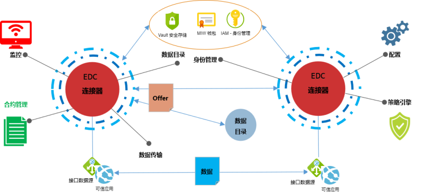 数据空间连接器为独立组织间的可信数据交换提供了一个控制和传输平台,它实现了国际数据空间标准(IDS RAM4.0)以及与GAIA-X相关的相关协议。